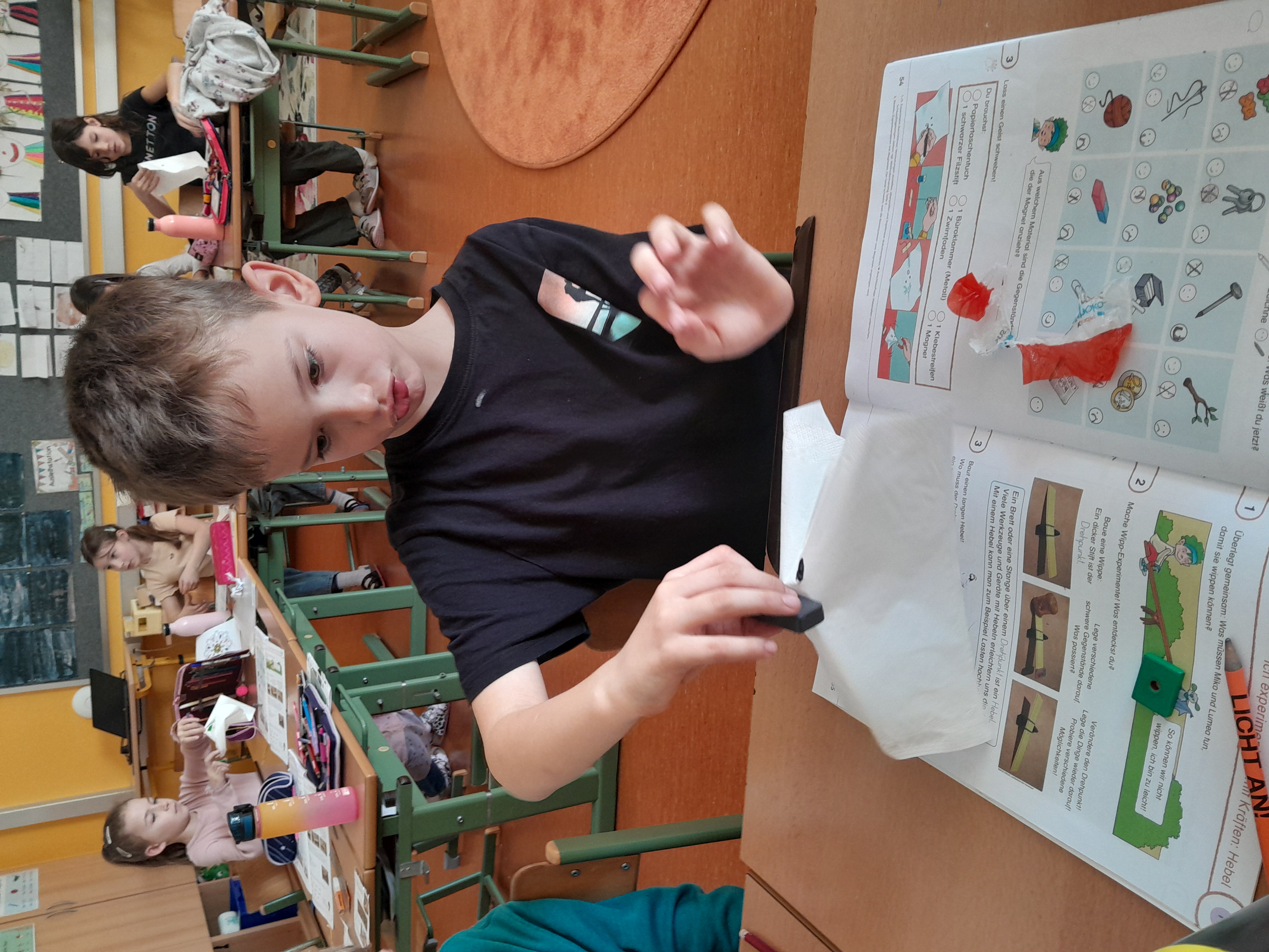 Danach haben wir über Magnetkraft gesprochen und natürlich haben wir viele Experimente mit Magneten gemacht.