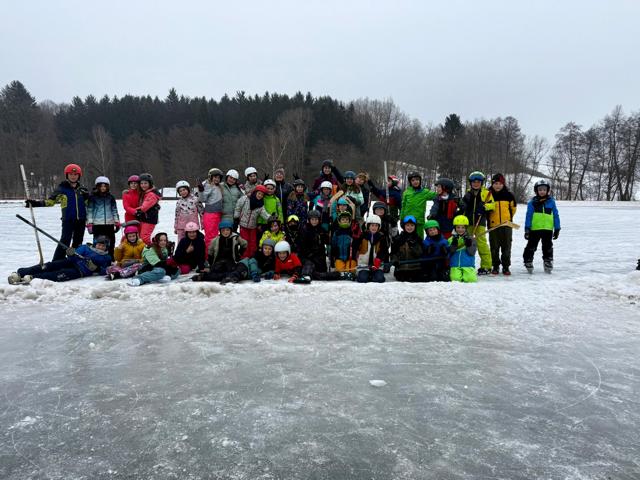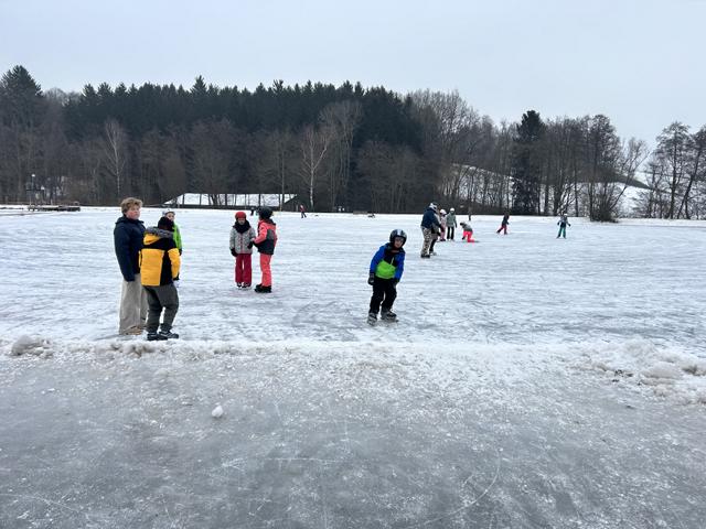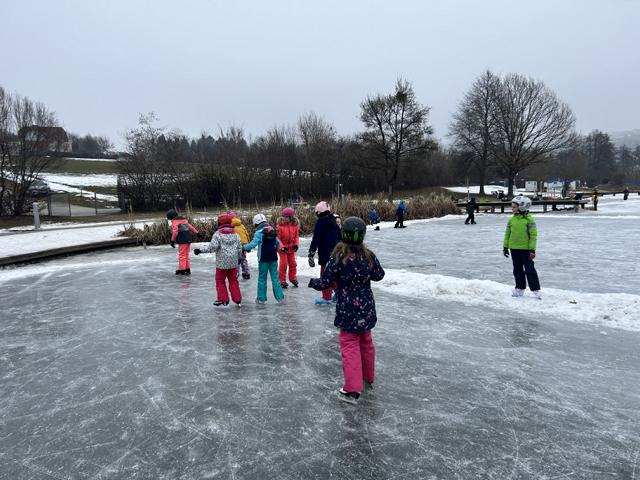 Mit den Eislaufschuhen über den See brettern, Abfangen spielen, Eishockey oder tanzen wie Eiskunstläufer. Die 4. Klassen hatten sichtlich Spaß.